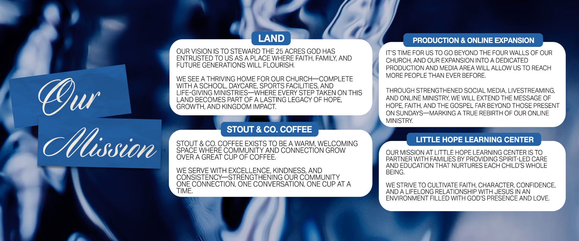 When you give, you take part in building a legacy that will outlive us — one that carries hope, truth, and the presence of God into the lives of future generations. Together, we will see His provision revealed again and again.